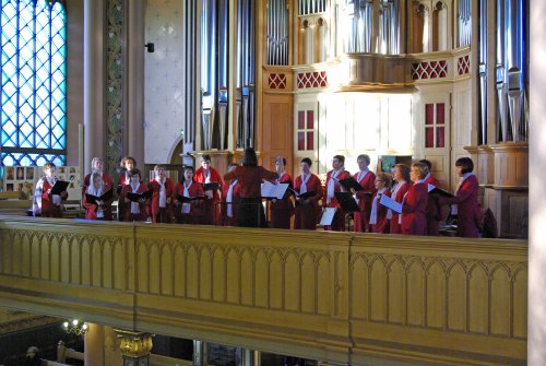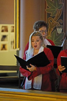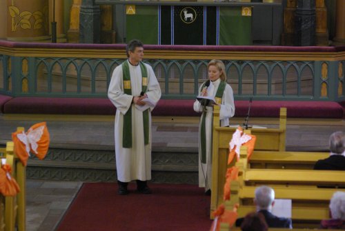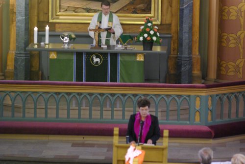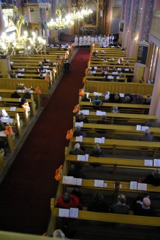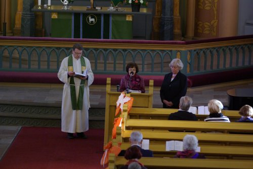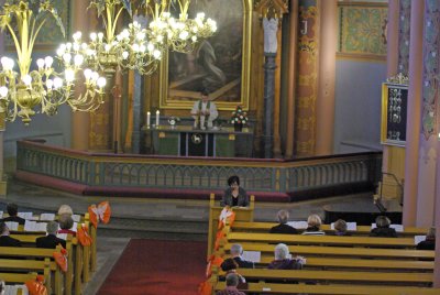 ![]() Jumalanpalveluksen päätti Sunniva-kuoro laululla Finlandia, Johtajanaan Ágnès Parásczyh |