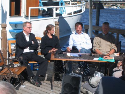 Paneelia, joka pidettiin ravintolalaiva Charlottan laiturilla. Laiturilla ei riittänyt istuma paikkoja kaikille asiasta kiinnostuneille, osa joutui olemaan "satamalaiturilla", kiinnostus yllätti myös järjestäjät. Keskustelu kävi pääosin maatalouspäästöjen ja niiden torjunnan pohjalta. Yleisöä kiinnostivat kysymyksin mm; *Peltojen ja vesistöjen väliset suojavallit.