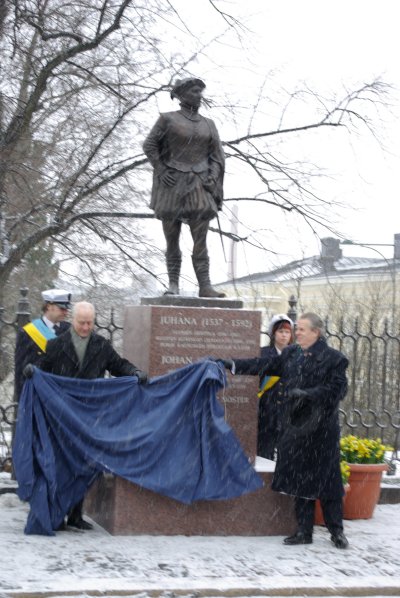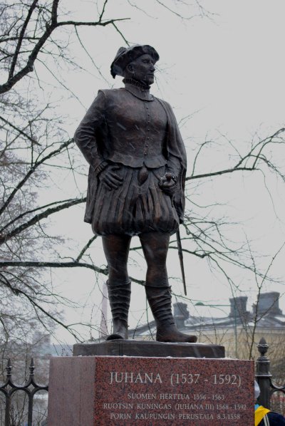 perustajan Juhana Herttuan patsaan porilaisille. Patsas sijoitettiin