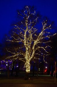 Jouluvalaistus Porin Raatihuoneenpuistossa 2020
