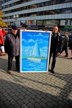 ![]() Taulun huusi porilainen toimitusjohtaja Erkki Mäkinen Vesijohtoliike Mäkinen Oy.stä. Huutokaupasta saatu tuotto lahjoitettiin Ensikoti yhdistykselle. |