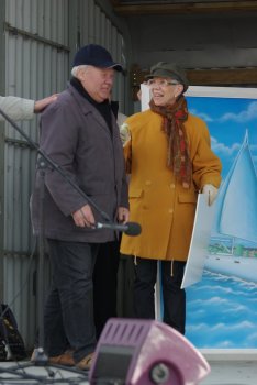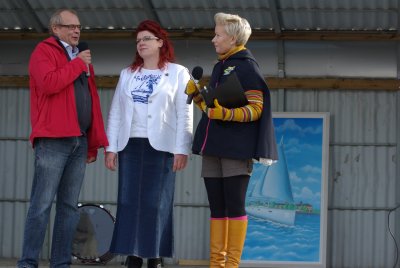 ![]() Tilaisuudessa huutokaupattiin Simo Riikosen suunnittelema ja piirtämä Pori- päivän tunnustaulu, meklarina toimi Matti Niemelä. |