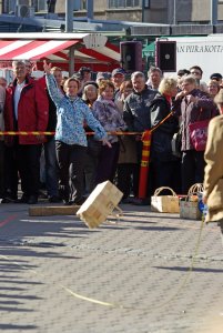 ![]() Tilaisuuden päätteeksi Pärekoriheiton kilpailuun. |