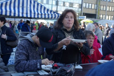 ![]() Perinteinen Ohragryynivelli ja "Klimppisoppa" tekivät hyvin kauppansa. ![]() ![]() Talousneuvos Ritva Tuulos |