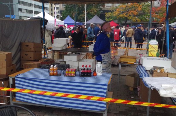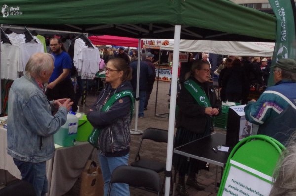Torille ja kävelykadulle olivat saapuneet myös eri puolueita, |