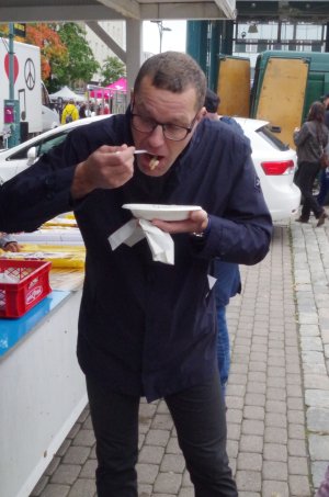![]() Kaupunginjohtaja meni varmistamaan, että on tullut syötyä. Poriseuran johtoryhmä varmisti tapahtuman |