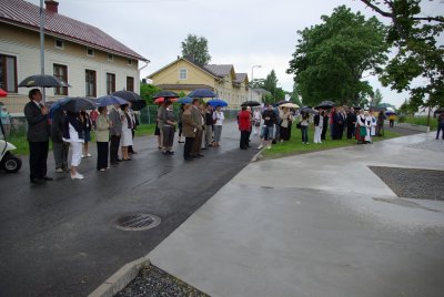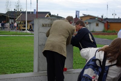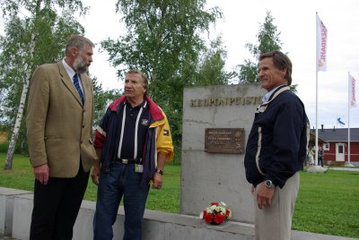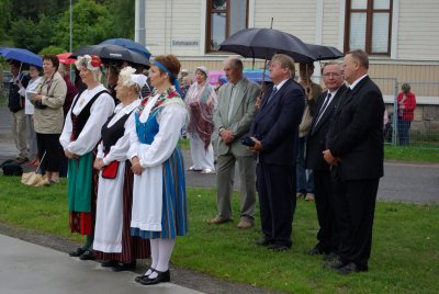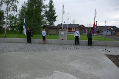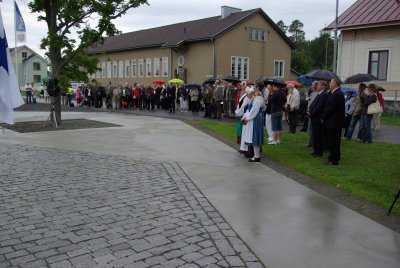Juha Mieto ja Kaarlo Kangasniemi paljastivat muistolaatan. ![]() Muistopuheen ja luovutuksen Reposaari yhdistyksen puolesta piti Kosti Rasinperä