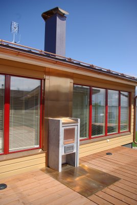 Loma-asuntojen lisäksi esillä on mielenkiintoisia ratkaisuja, niin tekniikan kuin lisätilojen suhteen. ![]() Siirrettävä takkahuone |