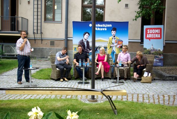 Meriniemen juontamassa paneelissa, miettivät Janne Pelkonen, Simo Takanen, Minna Helle, Teppo Säkkinen ja Annika Saarikko työelämää ja tulevaisuutta. |