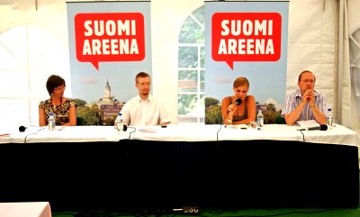 ![]() Ilmastonmuutos keskustelu SuomiAreena tapahtumassassa Anne Brunila, Ora Tynkkynen, Eija-Riitta Korhola ja Esa Härmälä |