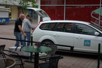 Erikoistoimittaja Mika Tommila "ulkolähetysvaunuineen" nähty myös liikenteessä. |