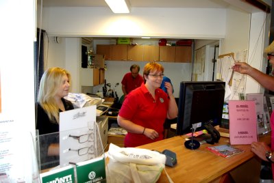 jakoivat osallistujille lähtölistat ja osallistuja kassit.