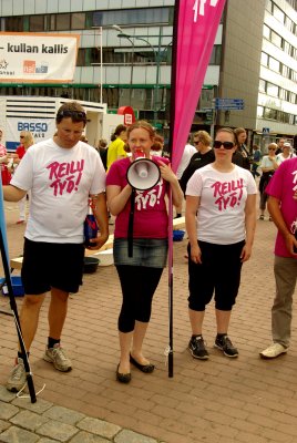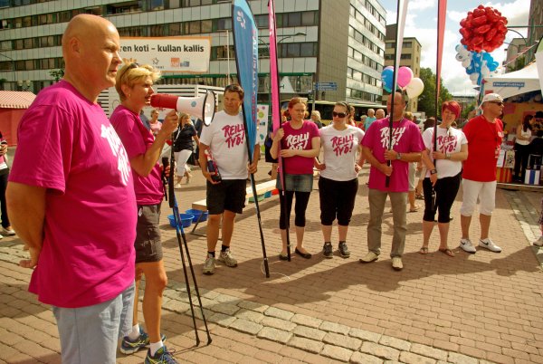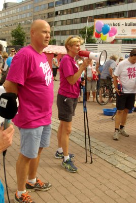 ![]() Maija Pihlajamäki ja Antti Palola kertoivat marssin tarkoituksesta ja kiittelivät osallistujia saavutuksesta. |