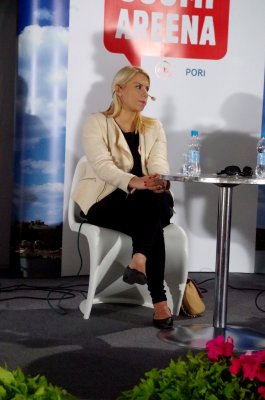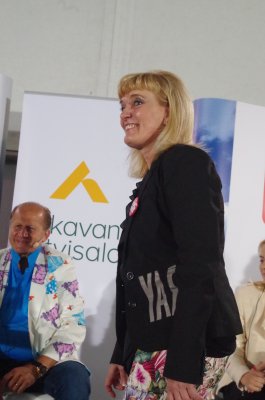Saara-Sofia Siren, Juha-Pekka Koskinen ja juontaja Salla Luomamäki |