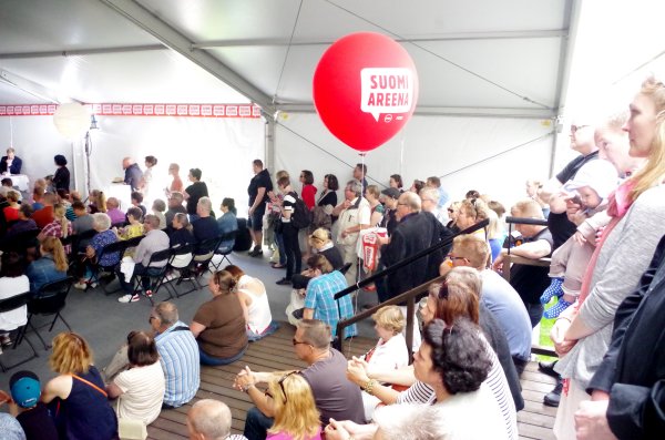 ![]() Tilaisuuteen oli tulossa enemmän kuulijoita kuin sisään voitiin ottaa. Kun joku poistui niin sama määrä uusia kuulijoita päästettiin sisälle. |