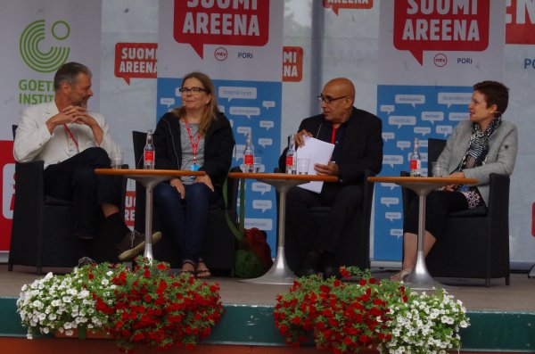 Keskustelijoina; kirjailijat Roman Schatz, Sirpa Kähkönen,