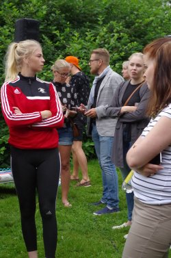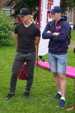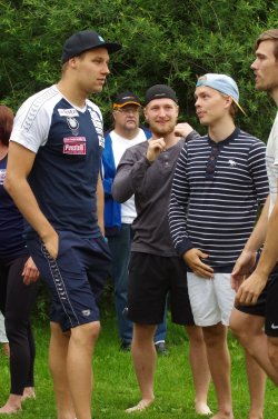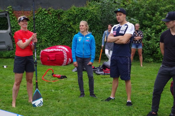 suoritettiin soutu/melonta kilpailu. ![]() Kilpailu säännöt ja ohjeet saavat joukkueiden kapteeneille, purjehtija Tuuli Sirenille ja uimari Matti Mattssonille |