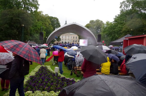 Sateisesta säästä välittämättä oli paikalle saapunut puiston täydeltä yleisöä