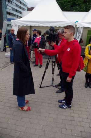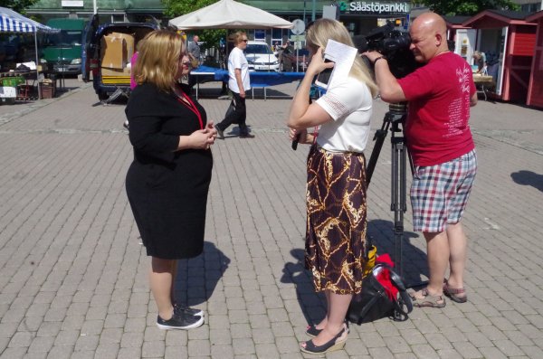 Ministeri Krista Kiurua haastateltiin torilla 18.7