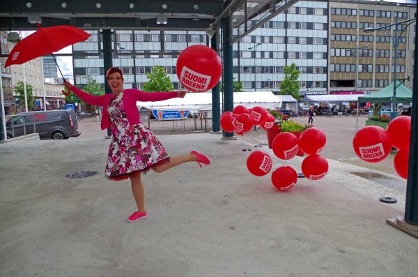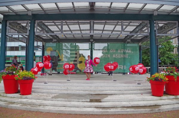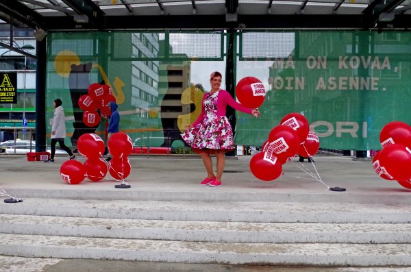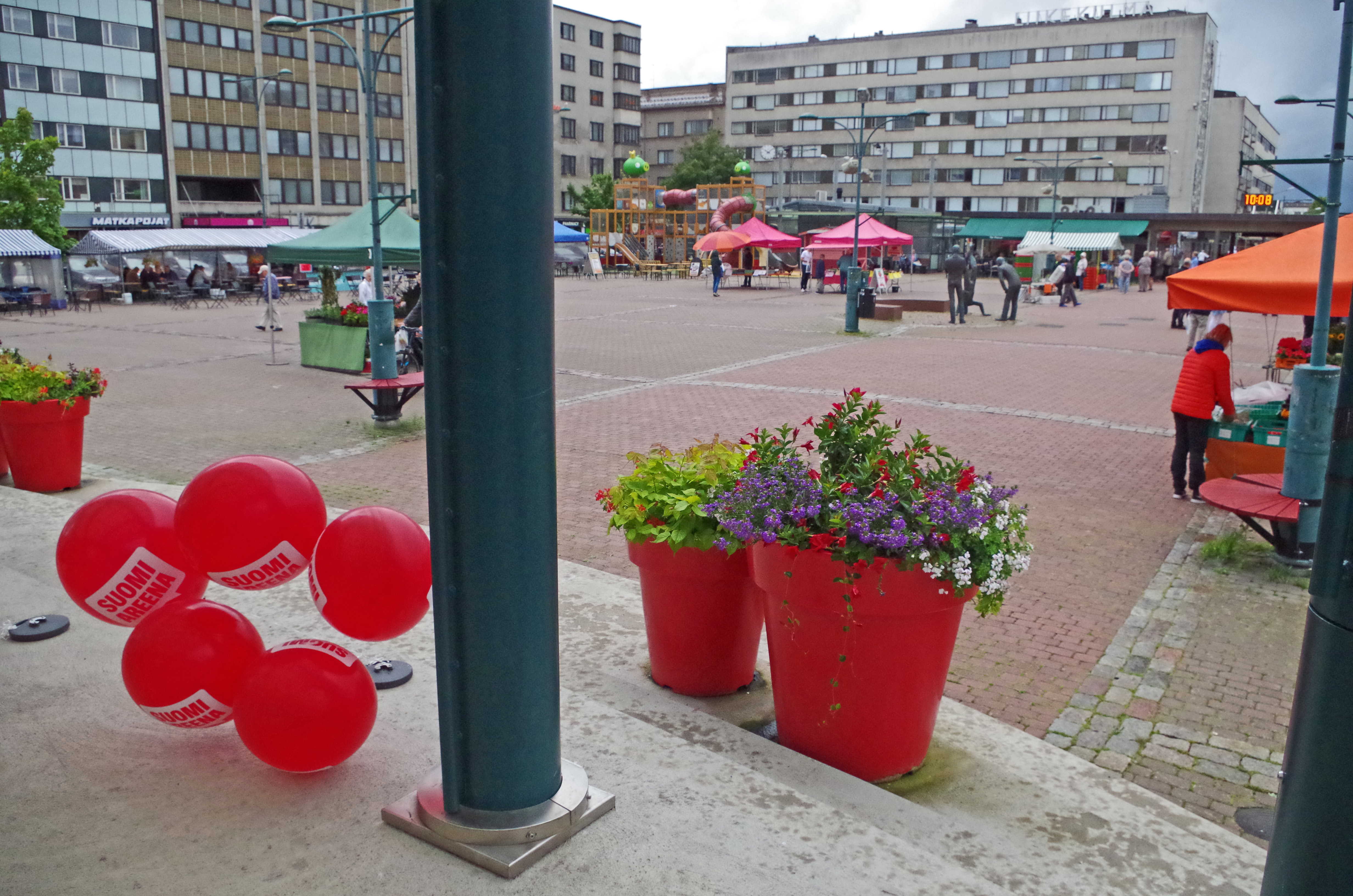 avasi porilaiset viikon SuomiAreena tunnuksin Porin Torilla 12.7.2020