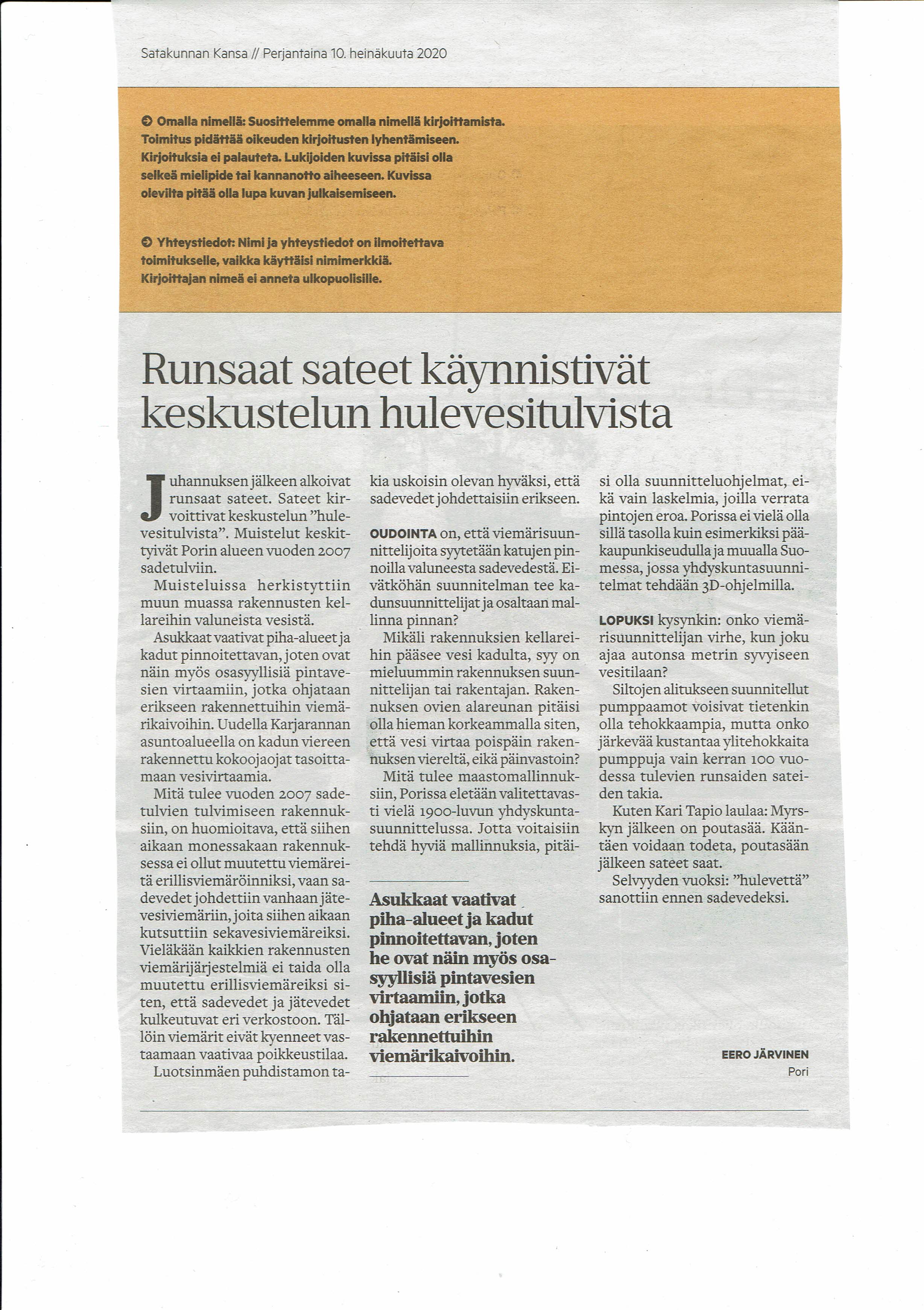 YVA- selvitys YVA kommentti 2008 Runsaat sateet ja