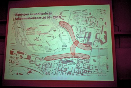 ![]() Porin kaupunkisuunnittelupäällikkö Olavi Mäkelä alusti illan aiheen ja esitteli muutamia visioita alueen kehittämiseksi. |
