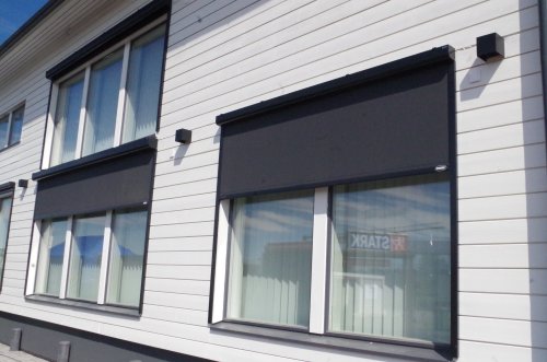 Ikkunamarkiisit rakennusten seinän mukaisesti. ![]() |