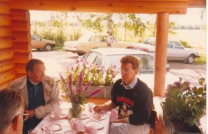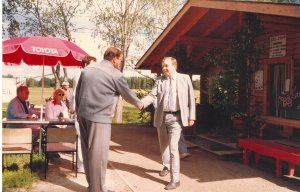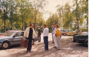 Pysäköintialueella vaihdettiin kuulumisia, kerhon sihteeri Matti Lehto ja Pekka Koivunen |