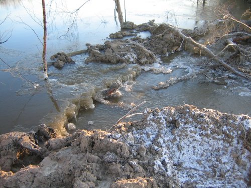 15.01.2005 Sateinen vuosi, syksyiset myrskyt ovat aiheuttaneet meriveden ja sitä kautta myös jokiveden pinnan kohoamisen. Lisänsä jokiveden kohoamiseen on tuonut leuto talvi,  jolloin joen pinta ei ole päässyt jäätymään. Pelastuslaitos pyrki  muodostamaan  jääkantta kevytrakenteisen puomin avulla asentamalla golfkentän kohdalle joen poikki  puomin, kohdalla vain sattui olemaan tulvapenkereen matalin kohta. Veden kohotessa tulvapuomin ja jäälauttojen vaikutuksesta vesi valui golfkenttälaajennukselle ja sitä kautta  myös "vanhan osan" itäisille (1,2,3,17 ja 18) väylille. Veden korkeudeksi mitattiin enimmillään +1.3m. Suomenlahdella, Loviisassa ja Haminassa, nousuiksi mitattiin +1.7 ja +1.9 metrin veden kohoamiset.