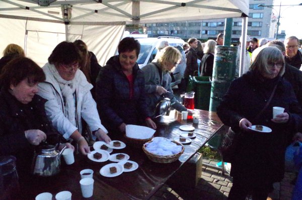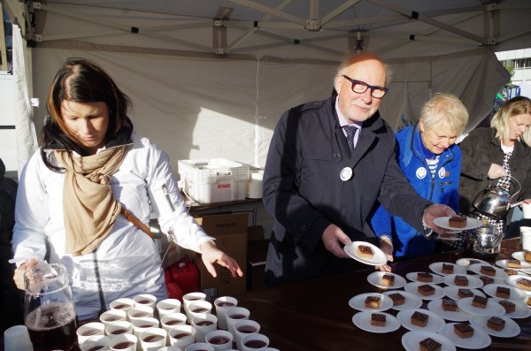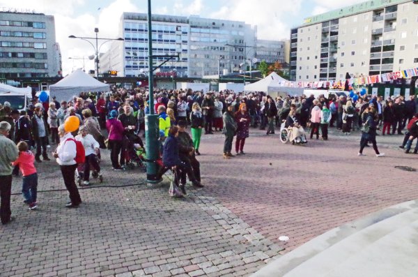 Iltapäivän ohjelmaa![]() Kaupunginjohtaja Aino-Maija Luukkonen ja apulaiskaupunginjohtaja Kari Hannus jakoivat kauppatorilla merkkipäivän kunniaksi MasaLiisaa ja mehua paikalle saapuneille vieraille |
