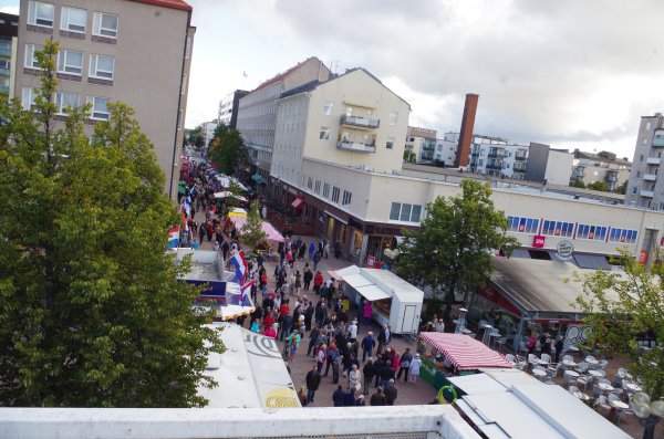 ![]() Kävelykatu Kävis (Yrjönkatu) oli myös varattu päivän tapahtumille ja tuotemyynnille. |