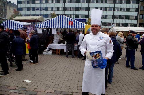 ![]() Satakunnan Keittiömestarit Porilaisia kaupaamassa. |