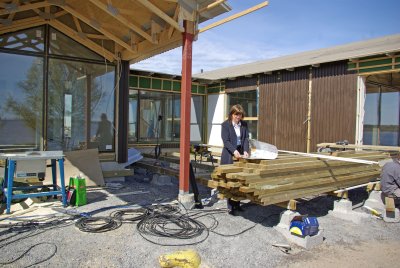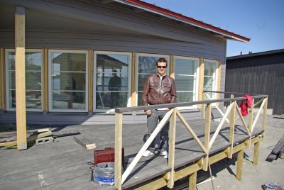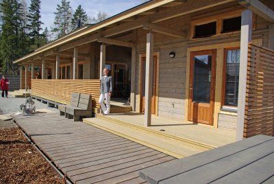 Tulevalla loma-asuntomessualueella rakennustyöt täydessä vauhdissa, avajaisiin n. 6 viikkoa. Osalla rakennuksia on sisustussuunnittelijat päässeet sisustustöihin. |