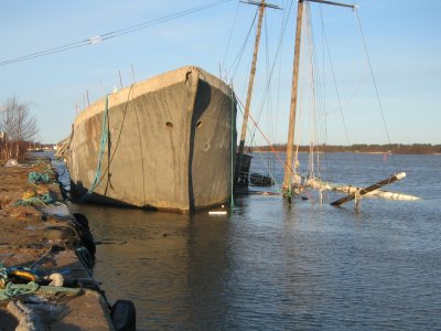 veneet on voudin toimesta huutokaupattu. Kuvan Kuunari Koivisto myytiin 1430€,lla ja uponneesta laivasta maksettiin 10€ |