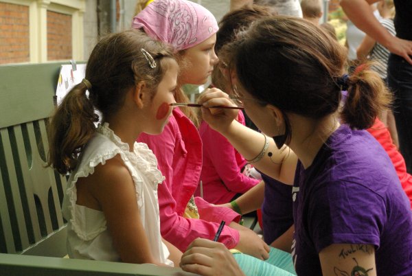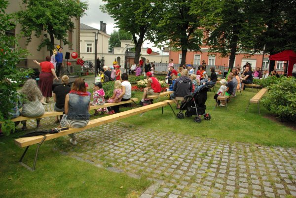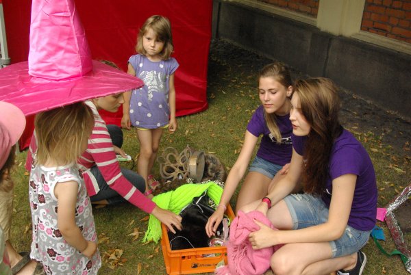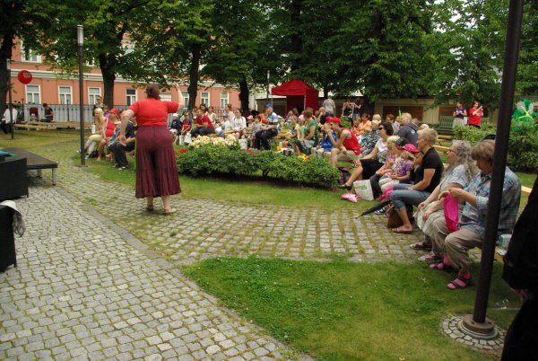 Lapsia oli runsaasti saapunut seuraamaan näytelmää ja osallismaan leikkeihin mukaan