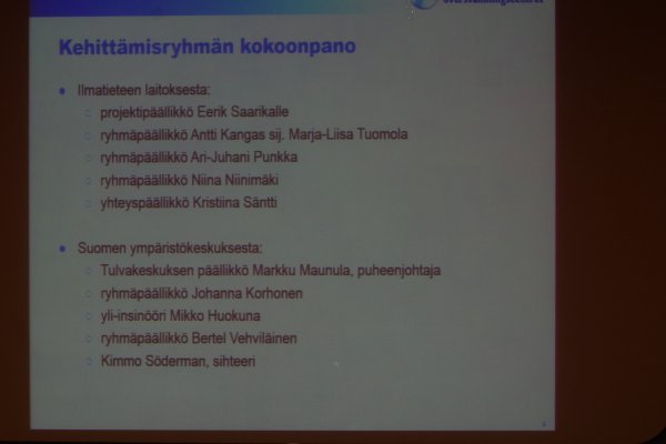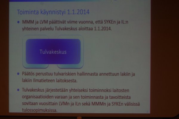 ![]() Koulutus päivät olivat samalla uuden Tulvakeskuksen avaus. Luentoja ja esitelmiä eri tutkimuksista ja seurannoista. |