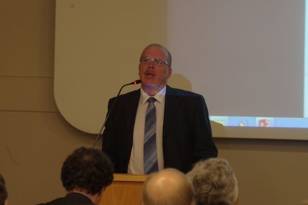 ![]() Porin Teknisen Palvelukeskuksen johtaja Jukka Kotiniemi toivotti vieraat tervetulleiksi Poriin |