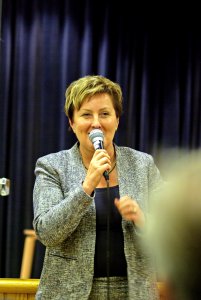 ![]() Porin "vahvat naiset" Asunto- ja viestintäministeri ja valtuuston puheenjohtaja Krista Kiuru, sekä kaupunginjohtaja Aino-Maija Luukkonen toimivat tilaisuuden avaajina ja puheenjohtajina. |