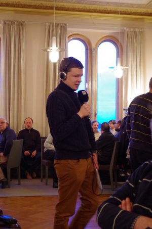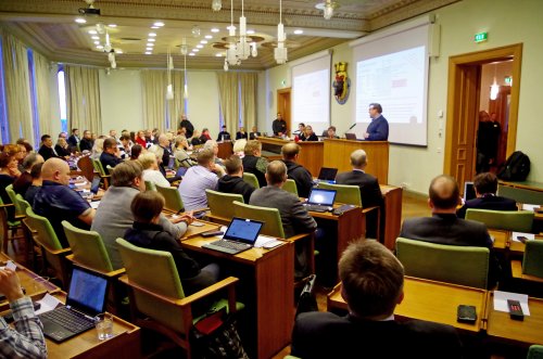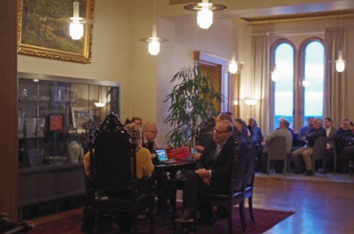 ![]() Valtuustosalin käytäville ja sivuhuoneisiin oli saapunut Ahlaislaisia asukkaita ja mökkiläisiä, kuuntelemaan valtuuston päätöstä |